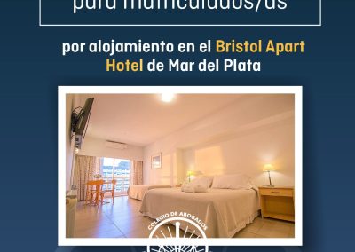 El Colegio de Abogados del Departamento Judicial Trenque Lauquen, representado por su Presidente, Dr. Ricardo Paso, y el Bristol Apart Hotel, por intermedio de su Jefe de Ventas, Luis Tarántola, firmaron un convenio con beneficios de descuentos para los matriculados y matriculadas durante todo el año.