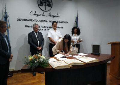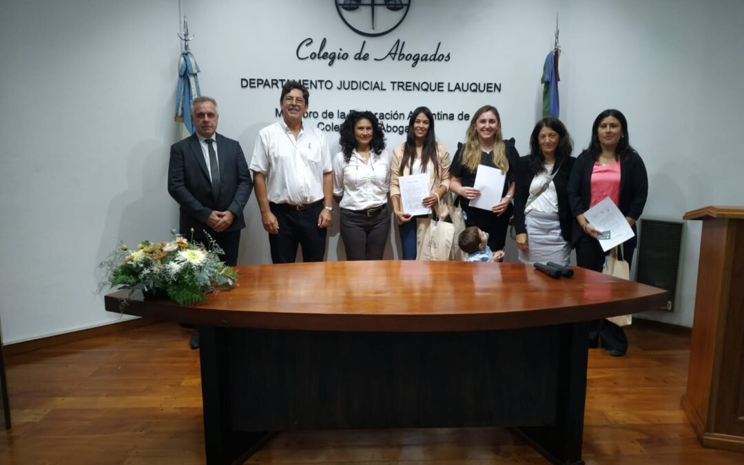 Una coincidencia: en el mes de la Mujer –el 8 de marzo se conmemora anualmente el día Internacional de la Mujer Trabajadora-, otras cuatro colegas, Victoria Crespo (de Gral. Villegas), María Jimena Izaguirre (Trenque Lauquen), Daiana Maldonado (Tres Algarrobos) y María Belén Yarza (Carlos Casares), prestaron juramento y se incorporaron a la matrícula del Colegio de Abogados del Departamento Judicial Trenque Lauquen (CADJTL).