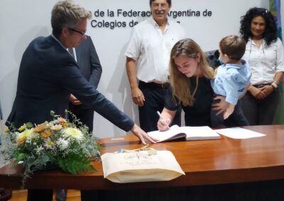 Acompañado por la Secretaria de la institución, Dra. Yolanda González González, y por el Vocal Titular y Director del Área Académica, Dr. Mario Martín, el Presidente, Dr. Ricardo Paso, se encargó de darles la bienvenida a las cuatro nuevas matriculadas durante el acto que se desarrolló en el Salón Auditorio el último miércoles de marzo.