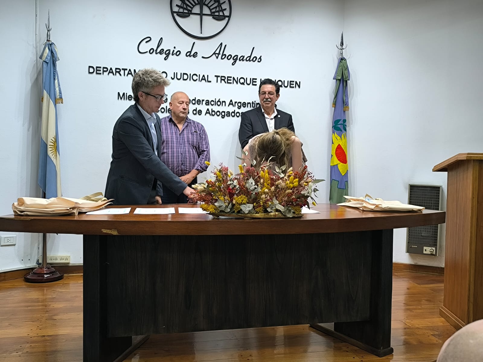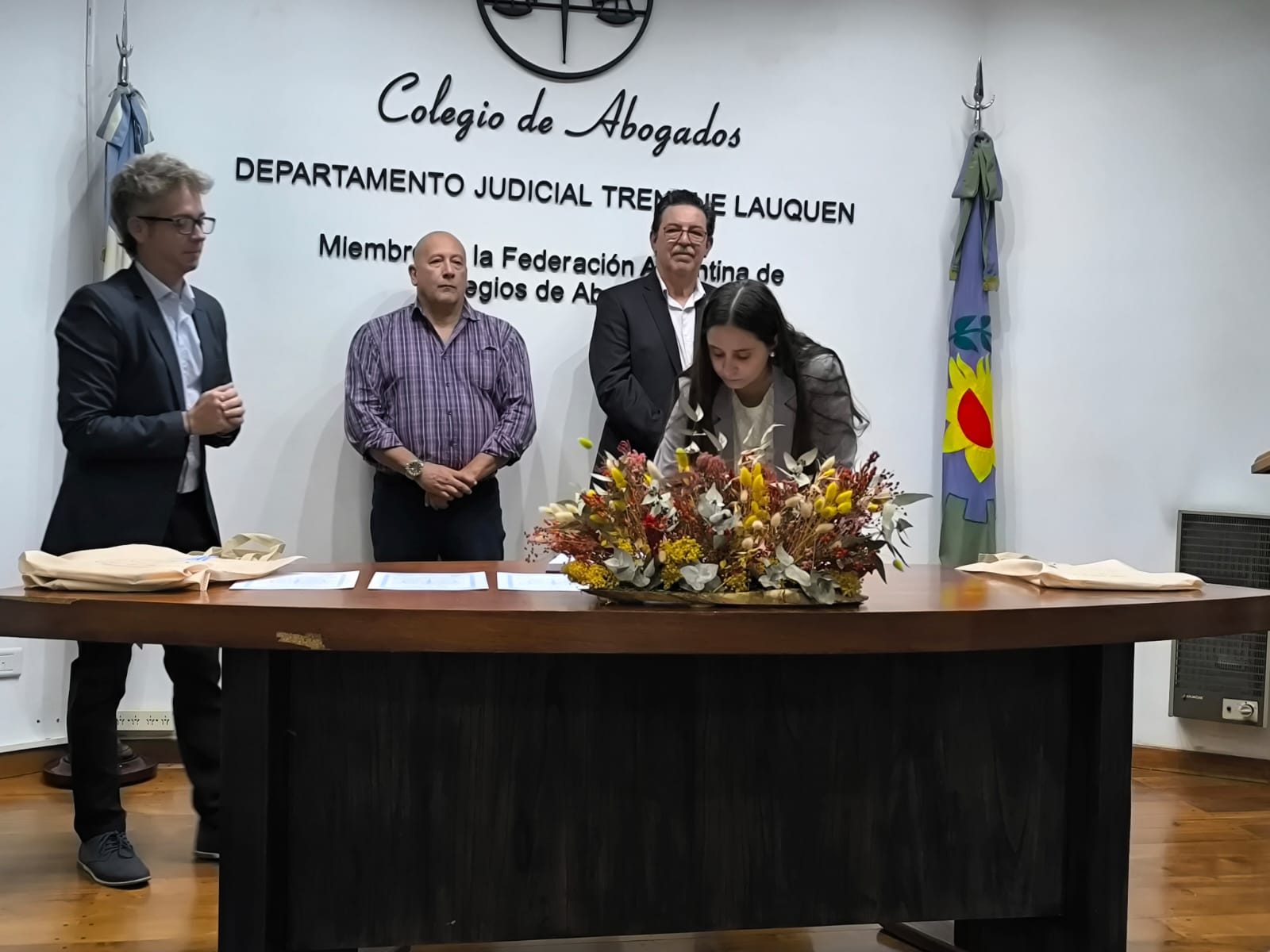 En un acto encabezado por el Presidente de nuestro Colegio, Dr. Ricardo Paso, y el Director de la Caja de la Abogacía, Dr. Hugo Palomeque, prestaron juramento y se incorporaron a la matrícula del Colegio de Abogados del departamento Judicial Trenque Lauquen, las abogadas Magalí Campagña (Pehuajó) y Josefina Arce y Candela Cobo y los abogados Tomás Estévez y Juan Eduardo Sartirana (Trenque Lauquen), además de la procuradora María José Padrón (Trenque Lauquen).